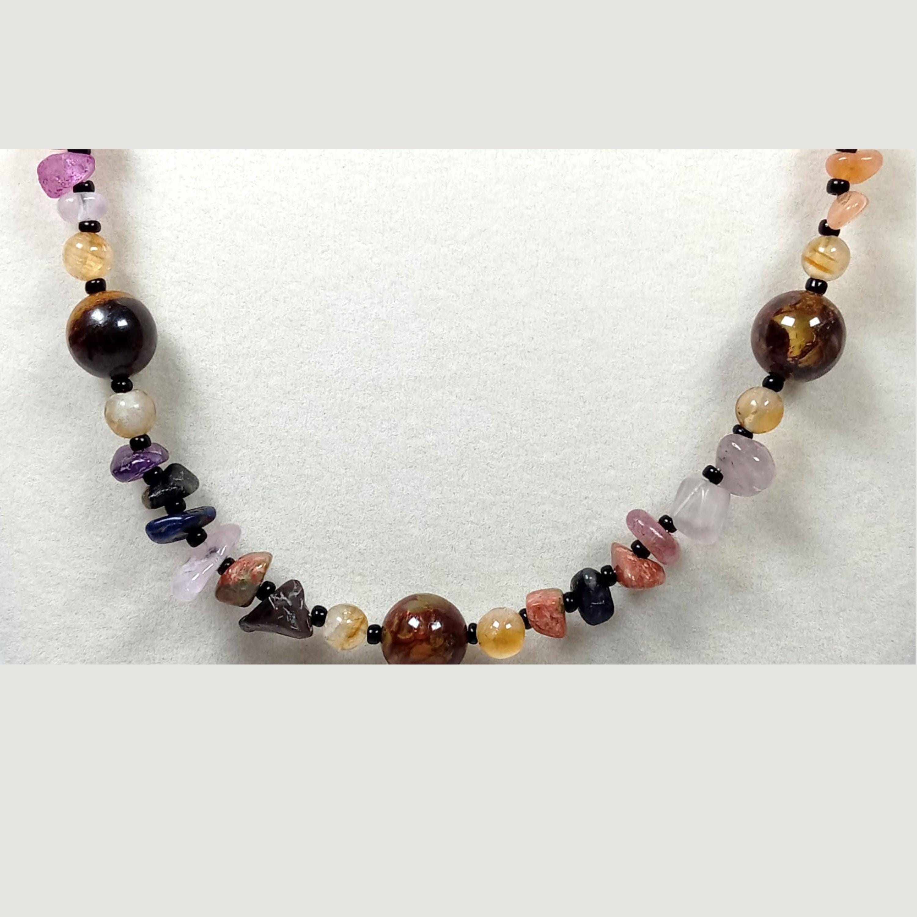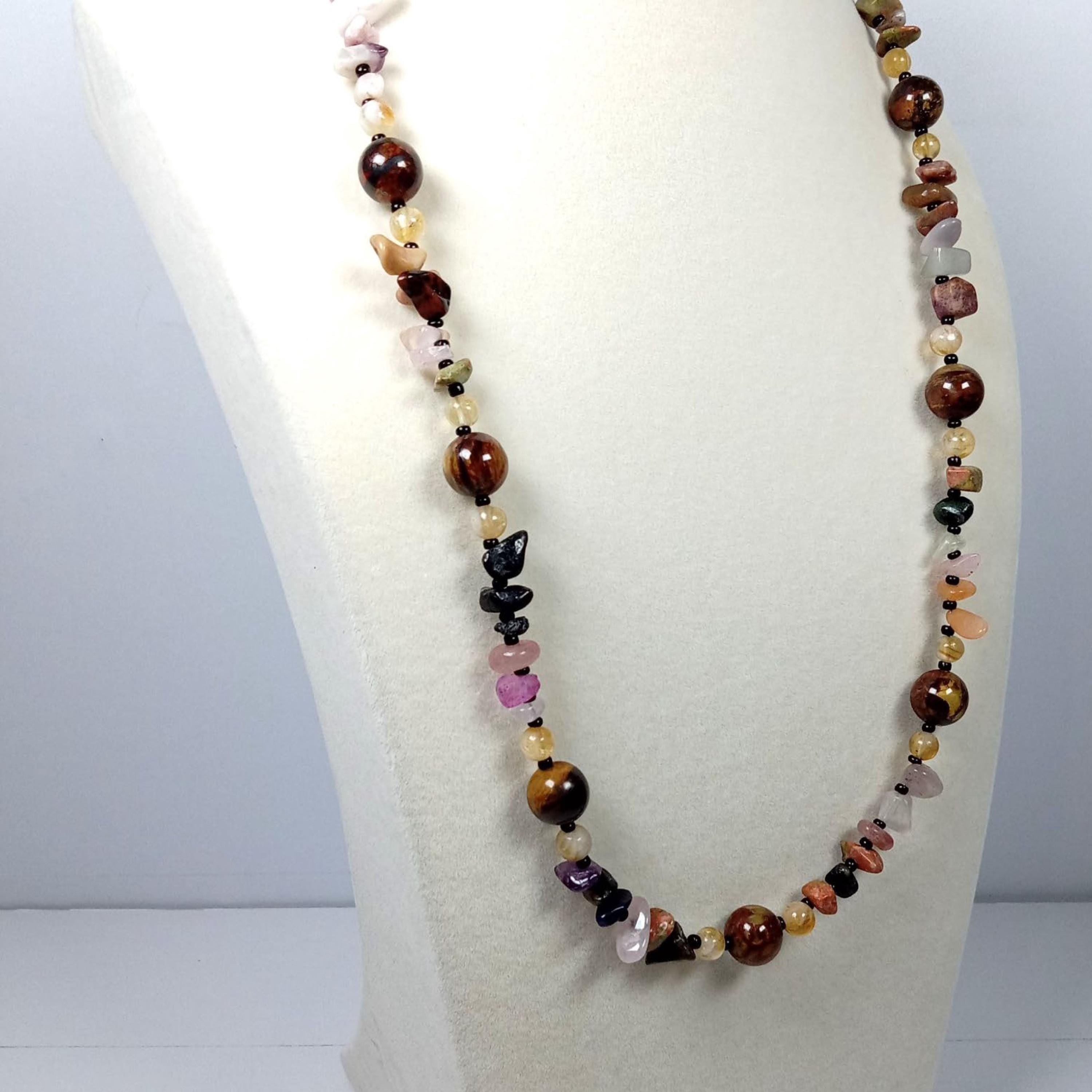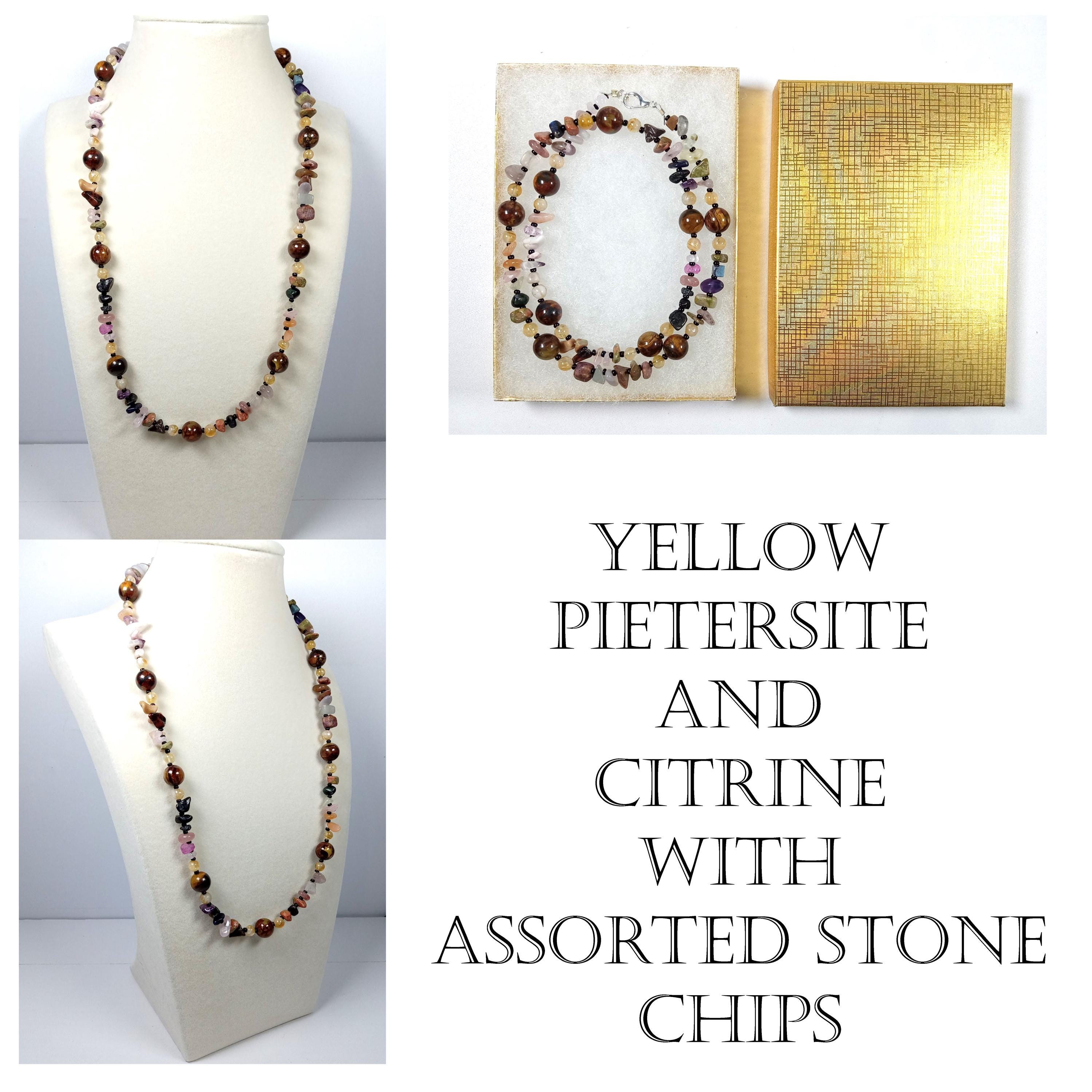 This one-of-a-kind Yellow Pietersite and Citrine with Assorted Stone Chips necklace is made with natural stones. One of the beads are birthstone for the month of November.