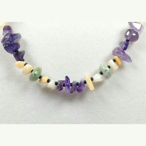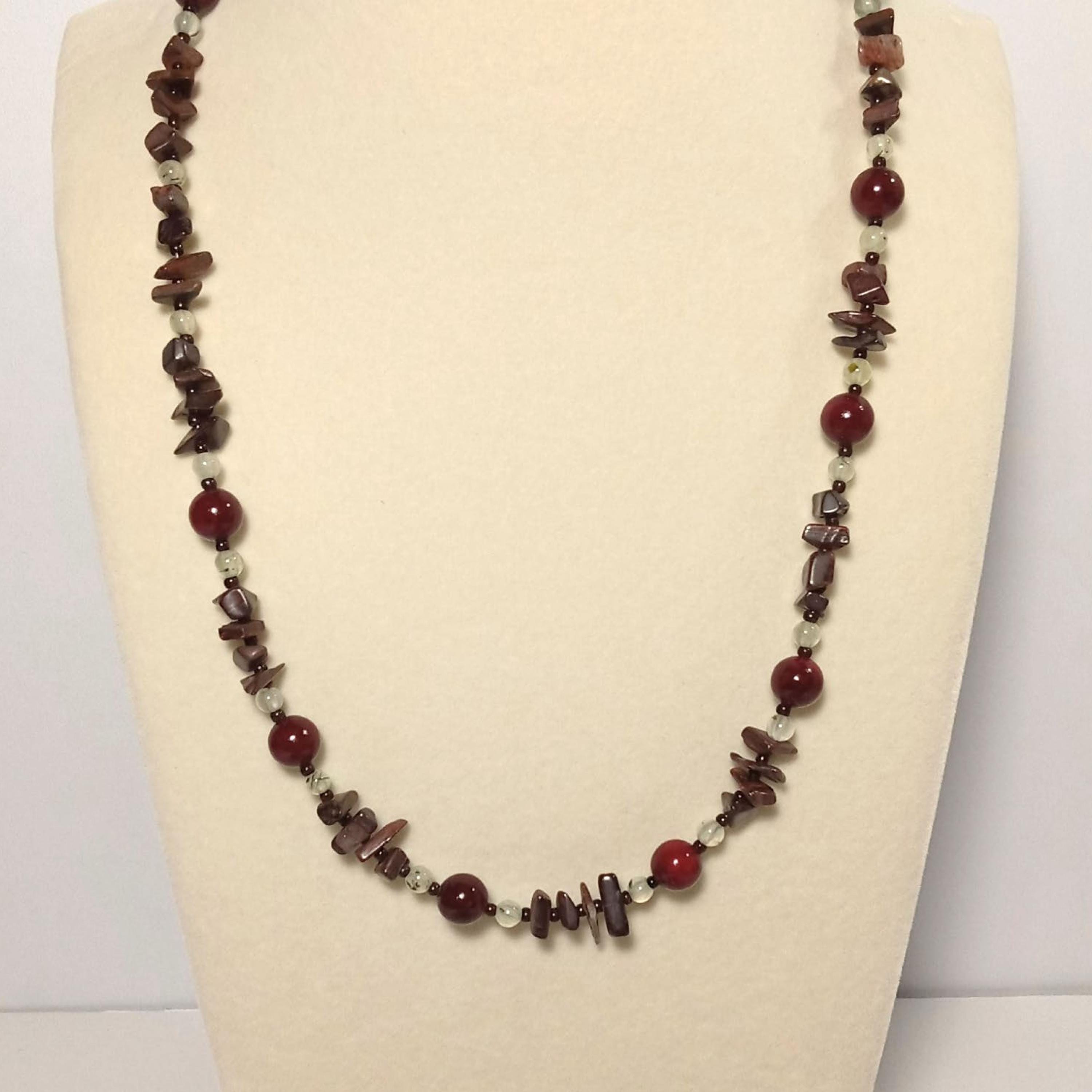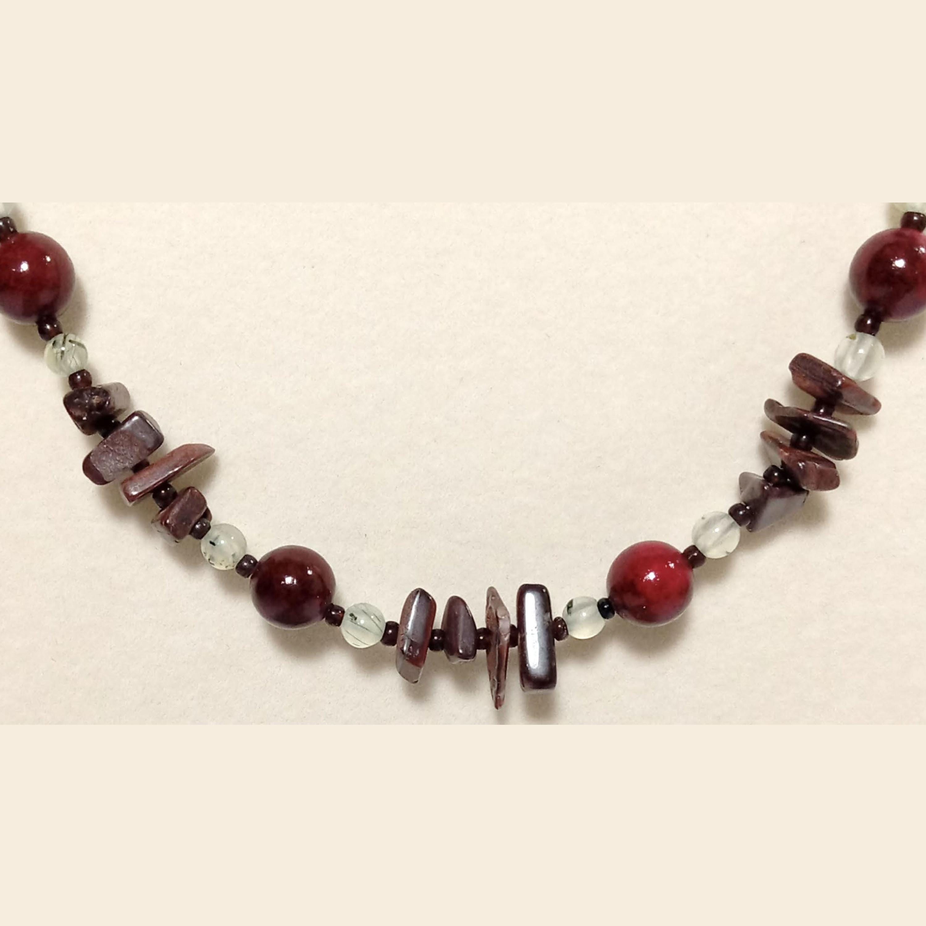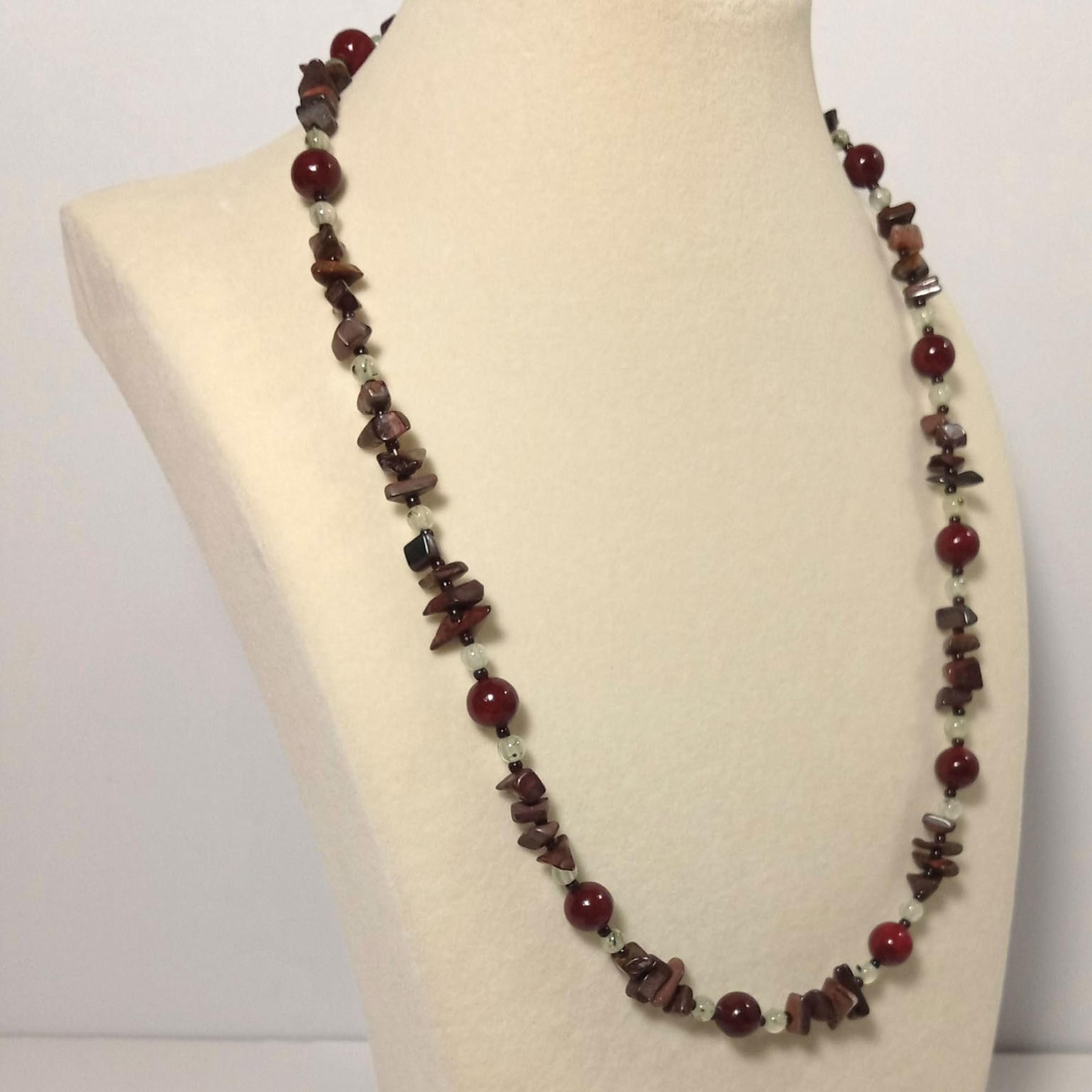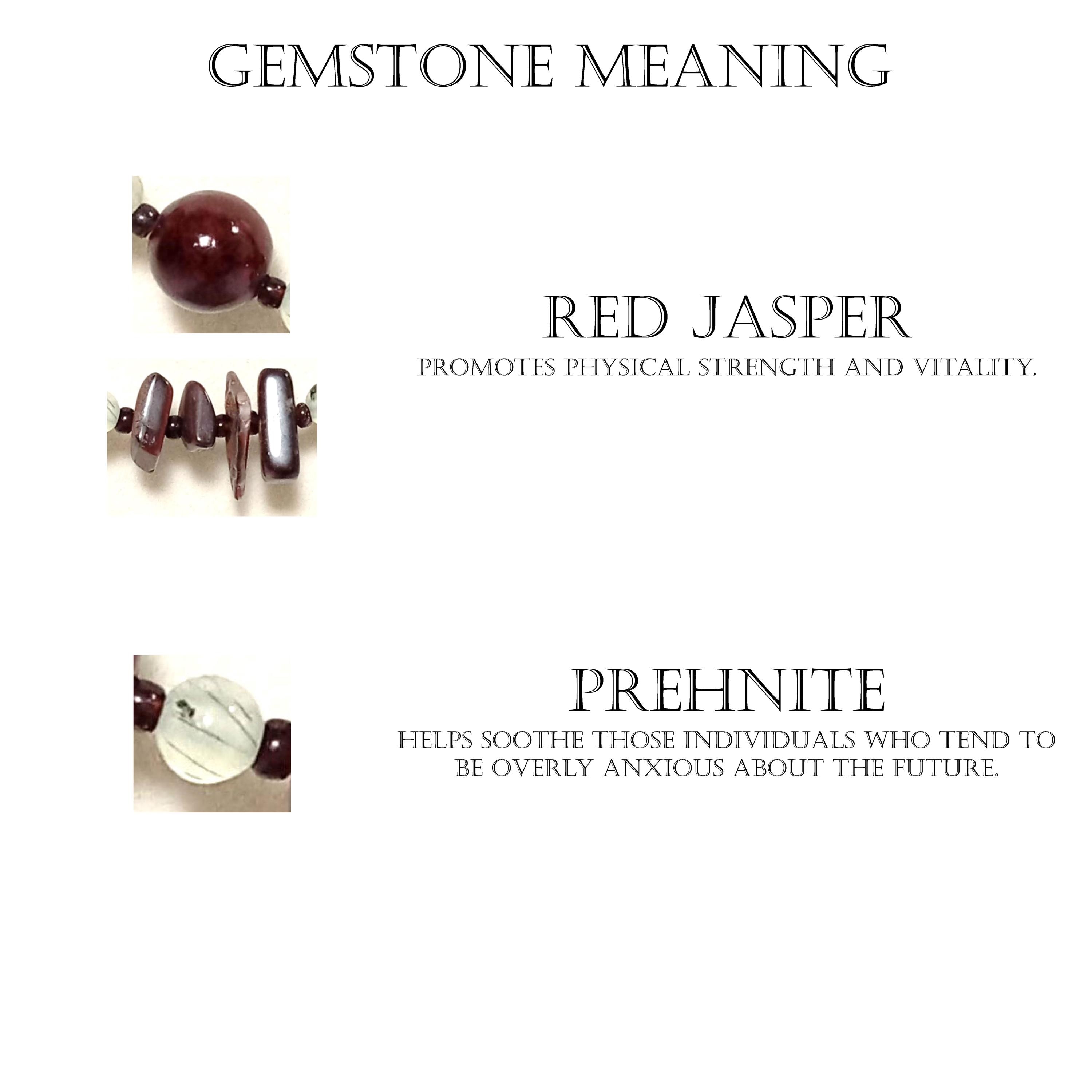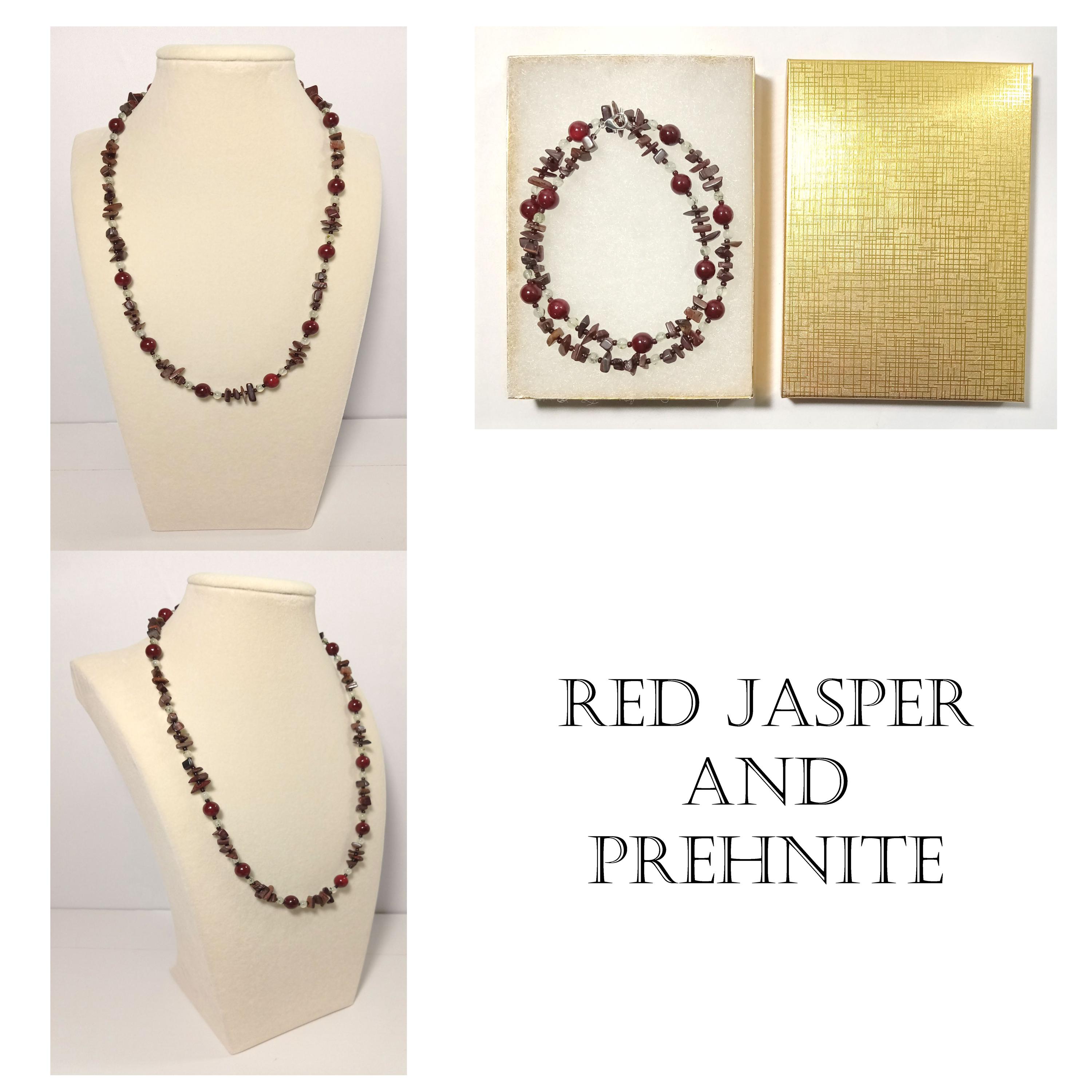 This one-of-a-kind Red Jasper and Prehnite is a necklace made with natural stones.