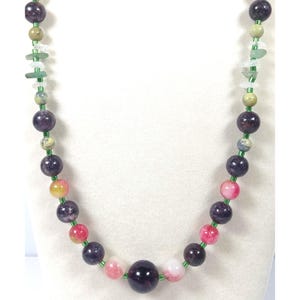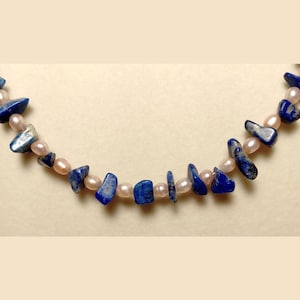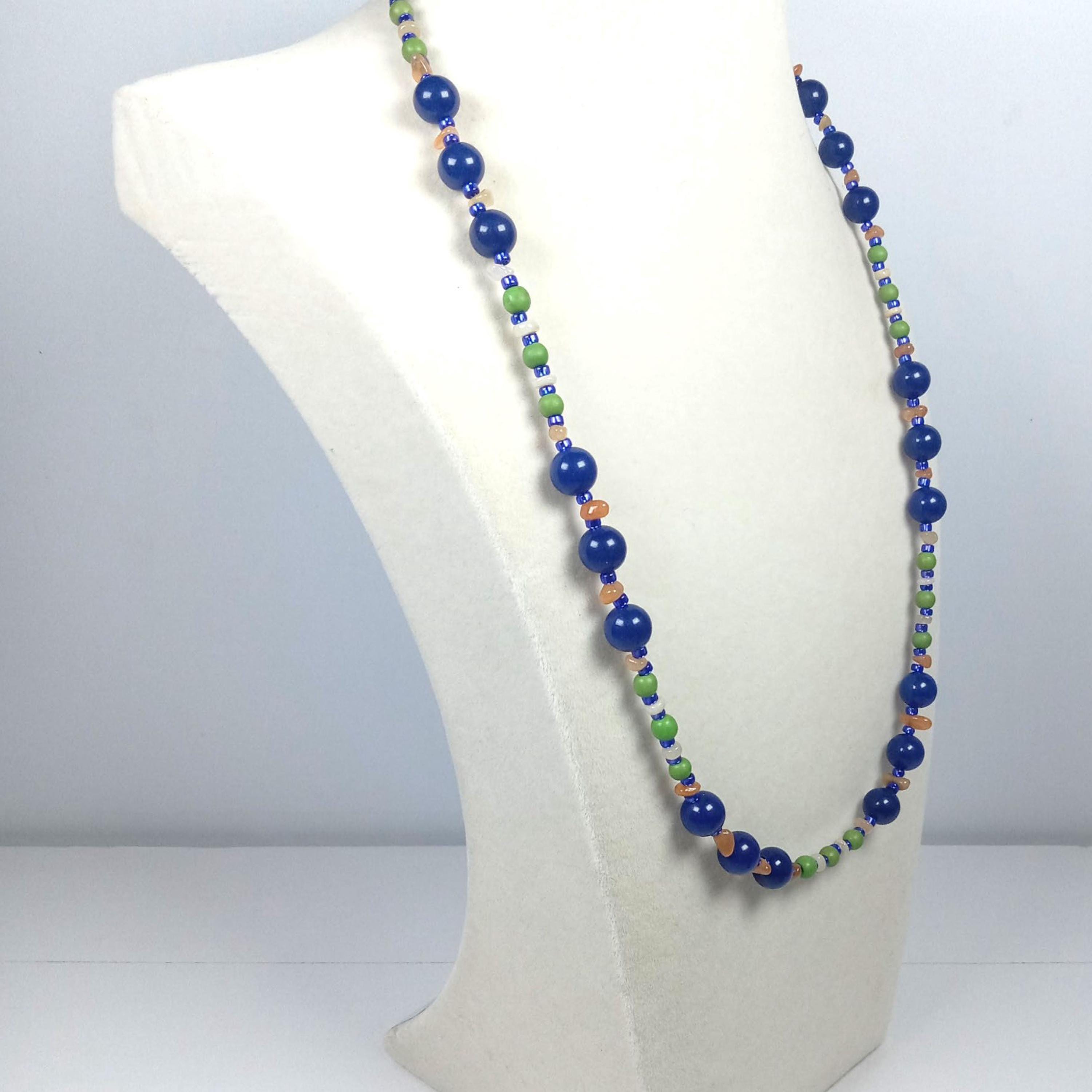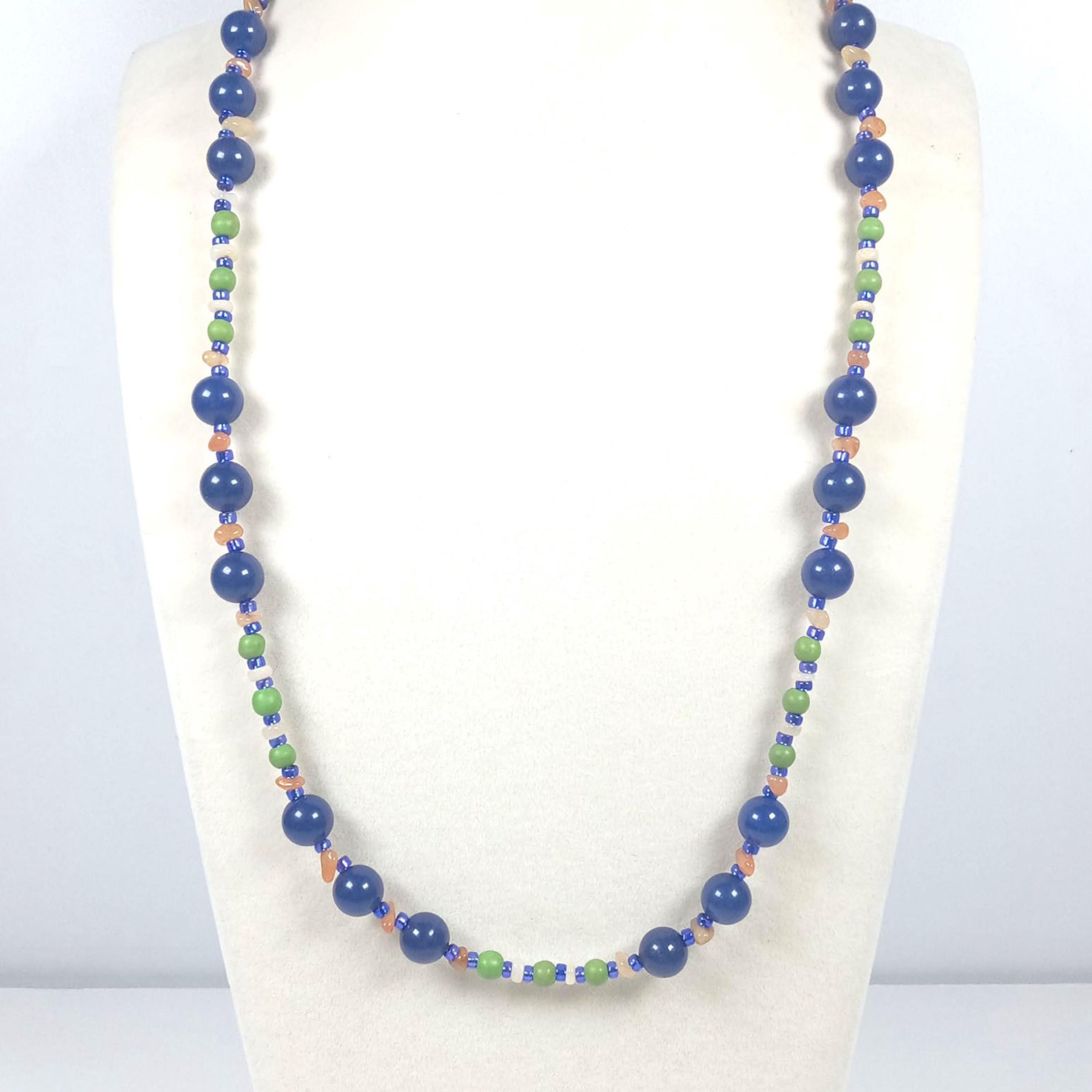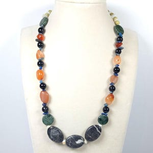 This one-of-a-kind Lapis Lazuli and Green Jasper with Ethiopian Opal and Red Aventurine Chips is a necklace made with natural stones. Two of the beads are birthstones for the months of October and December.